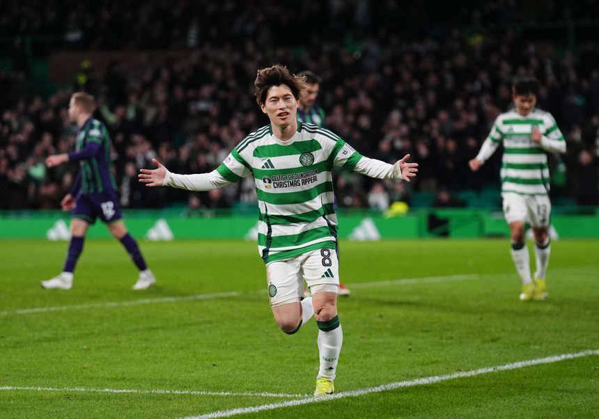 Furuhashi a festejar o terceiro golo do Celtic no jogo, já com Paulo Bernardo em campo - Foto: IMAGO