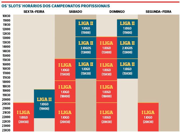 No documento fica claro em que dias e horas se vão jogar a I Liga e a II Liga. Tal como sucede agora, a jornada espalha-se por quatro dias. Entre sexta-feira e segunda-feira. E isso permite a venda consoante os dias ou as horas.