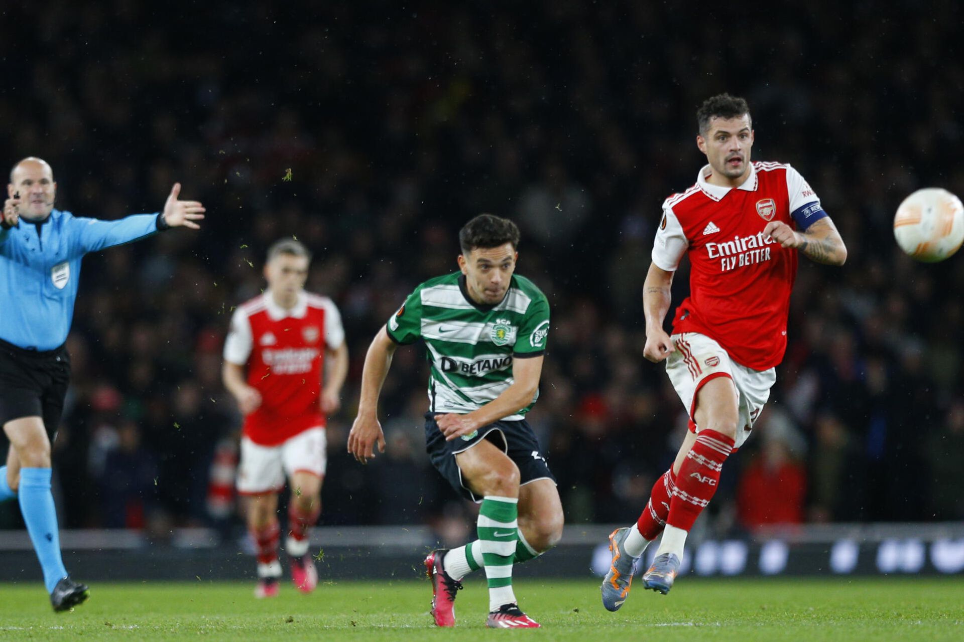 O golo de Pedro Gonçalves no Arsenal-Sporting, em 2023 - Foto: Rui Raimundo/A BOLA
