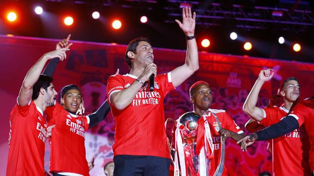 «Boa noite, Benfica, somos campeões nacionais! Chega de pedir o 38, ele já cá está! Não é noite de grandes discursos mas não posso acabar a noite sem agradecer a este maravilhoso grupo de trabalho e excelente equipa técnica, excelente staff, o compromisso que assumiram desde o primeiro dia e que nos trouxe aqui. Mas, acima de tudo, agradecer a todos vocês que acreditaram desde o primeiro dia que estaríamos no Marquês no final. Chegámos, e graças a vocês, num título que é da união, do nosso orgulho, que é do Benfica! Viva o Benfica!», atirou Rui Costa já em jeito de final de festa, antes de vestir a pele de adepto por um instante.