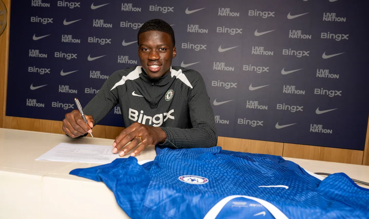 Dário Essugo a ser apresentado no Chelsea (Foto: Chelsea FC)