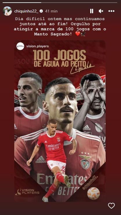«Dia difícil ontem, mas continuamos juntos até ao fim! Orgulho por atingir a marca de 100 jogos com o Manto Sagrado», escreveu, nas histórias da rede social Instagram.