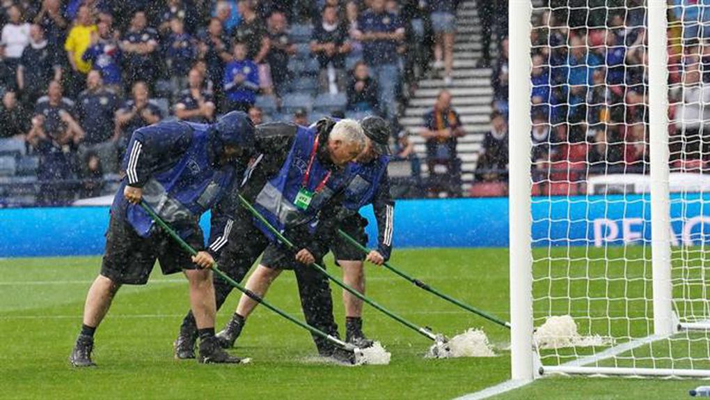 O encontro entre Escócia e Geórgia, da quarta jornada do grupo A de qualificação para o Euro-2024, foi suspenso, aos 10', devido à chuva forte que tem caído sob Glasgow.