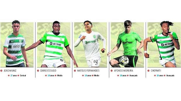 Nesta pré-época, os olhos do universo leonino vão estar no defesa-central João Muniz (17 anos) e no extremo Afonso Moreira (18), que vão viver a primeira experiência do género, bem como em Essugo (18), Mateus Fernandes (18) e Chermiti (19), estes já mais rotinados com os trabalhos do plantel principal, mas todos eles ainda à procura de espaço - Gonçalo Inácio, também da formação leonina, já está noutro patamar.