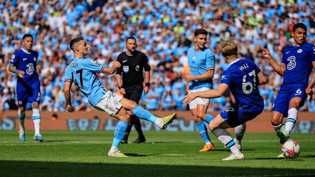 Já coroado campeão, o Manchester City já está em vantagem sobre o Chelsea, com o único golo do jogo até agora a ser apontado pelo jovem avançado argentino Julián Álvarez, aos 12', assistido por Palmer.