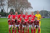 No Estádio Aurélio Pereira, em Alcochete, os primeiros minutos foram bastante equilibrados e com pouca baliza. As comandadas de Mariana Cabral chegaram ao golo inaugural na partida por Olivia Smith (30') após um grande passe de Jacynta Gala. Antes do intervalo, Beatriz Cameirão, na sequência de um livre, ameaçou a baliza de Hannah Seabert, mas a guardiã leonina revelou muita segurança na defesa.