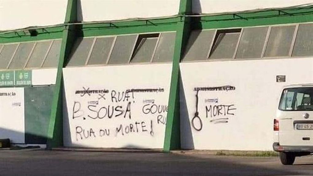 Durante a madrugada, adeptos inscreveram «morte ou rua» e desenharam uma forca ao lado dos nomes de Bruno Sousa (diretor desportivo) e Carlos Gouveia (diretor geral da SAD), pinturas que, entretanto, já foram retiradas do local.