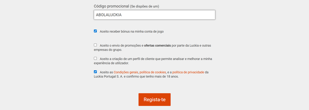 No entanto, a cereja no topo do bolo é mesmo o bónus de boas-vindas. O nosso código promocional Luckia ABOLALUCKIA garante-lhe 5€ grátis sem depósito, coisa rara em operadoras licenciadas nacionais.