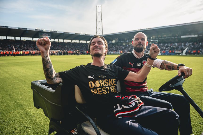 Olsson celebrou, em maio, a conquista do campeonato por parte do Midtjylland - Foto: IMAGO