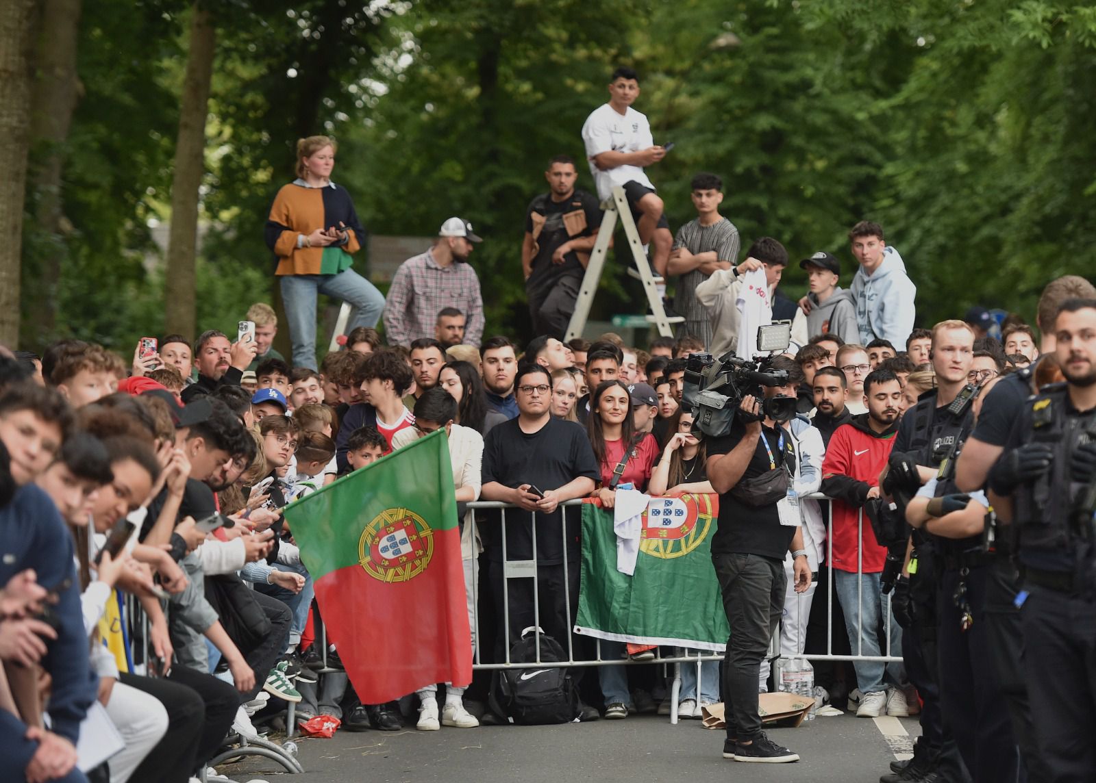 Gritava-se por Ronaldo, por Portugal, milhares de telemóveis no ar, na esperança de um pequeno vestígio que fosse de um jogador luso, de um técnico ou similar… À distância, os que se posicionaram em pontos mais elevados ainda conseguiram ver algo. Os restantes iam felizes por terem demonstrado que os eleitos de Martínez nunca caminharão sozinhos neste Europeu.