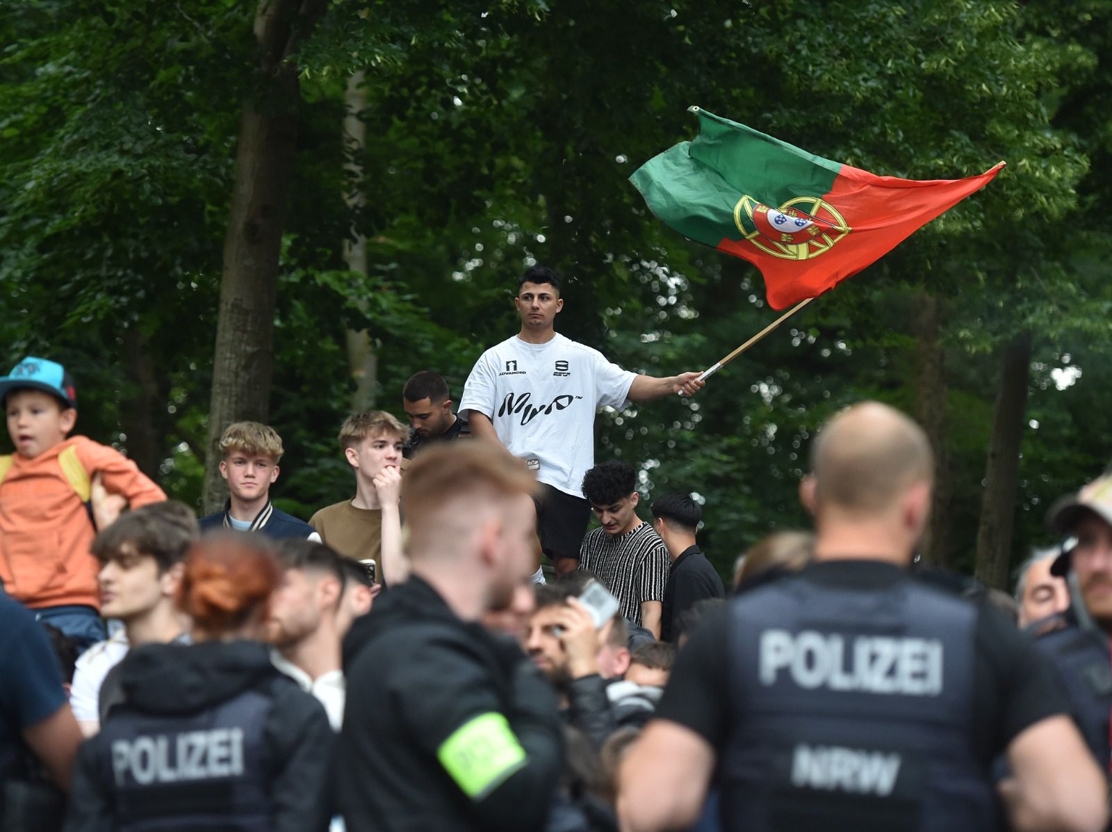 A movimentação descontrolada de centenas de adeptos para zonas proibidas foi inesperada e gerou bastante tensão no local, sobretudo entre os agentes da polícia alemã que, por instantes, pareceram perdidos no meio da confusão.