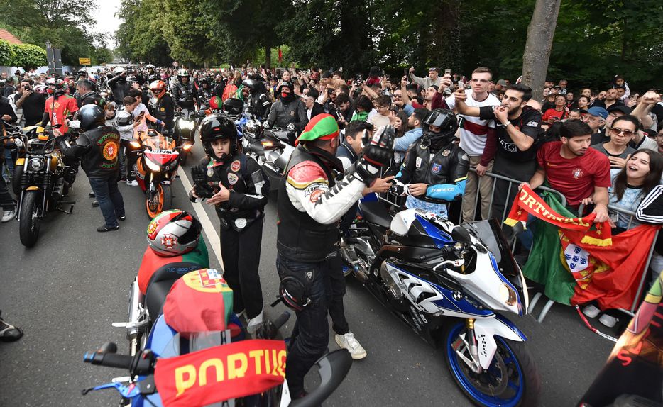 Atrás da comitiva portuguesa, no caminho entre o aeroporto de Munster e a pequena vila da Renânia do Norte que servirá de quartel-general de Portugal durante o Euro, vinham dezenas de motas de clube Moto-Tugas Portugal, sediado em Gutersloh (cidade ali ao lado), num ruído ensurdecedor que acompanhou Cristiano Ronaldo, Bernardo Silva, Bruno Fernandes e restantes eleitos nos 50 quilómetros do trajeto.