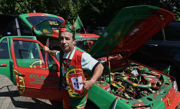 «Foi adquirido em 2004 depois de termos perdido a final do Europeu em Portugal. Uma cliente minha estava interessada num carro novo e perguntou-me se queria o antigo para tirar peças. E pediu-me um euro! Fizemos contrato e já está. Perdemos com a Grécia, mas fiz a festa em Hagen, cidade onde habito. Depois comecei a fazer brincadeiras com isto. Umas pinturas e o sucesso foi imediato. Tem estado com a equipa em todas as provas. Mesmo em França no Europeu 2016 esteve lá, naquela bela data para a equipa portuguesa», lembra.