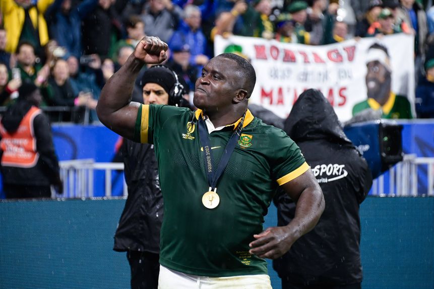 Trevor Nyakane foi um dos mais animados após a conquista do Mundial de râguebi pela África do Sul (IMAGO) - Foto: IMAGO