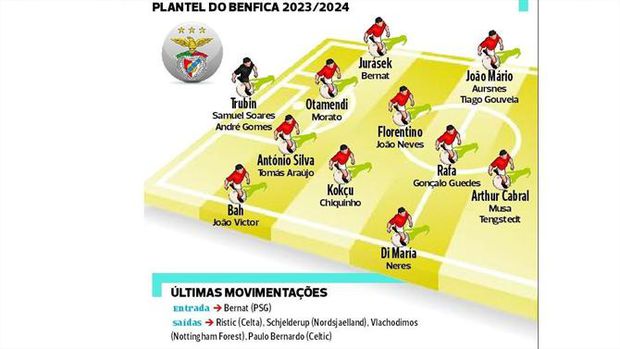 Vlachodimos (Nottingham Forest) e Ristic (Celta) abandonaram em definitivo por não contarem para o treinador alemão, enquanto Paulo Bernardo e Schjelderup voaram para o Celtic (Escócia) e Nordsjaelland (Dinamarca), respetivamente, por empréstimo.