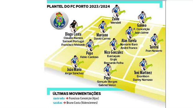 No FC Porto, a novidade deu pelo nome de Francisco Conceição, filho do técnico, que regressa do Ajax. O extremo esquerdino foi cedido, acompanhando o colega Jorge Sánchez, mexicano do clube de Amesterdão que já tinha sido apresentado.