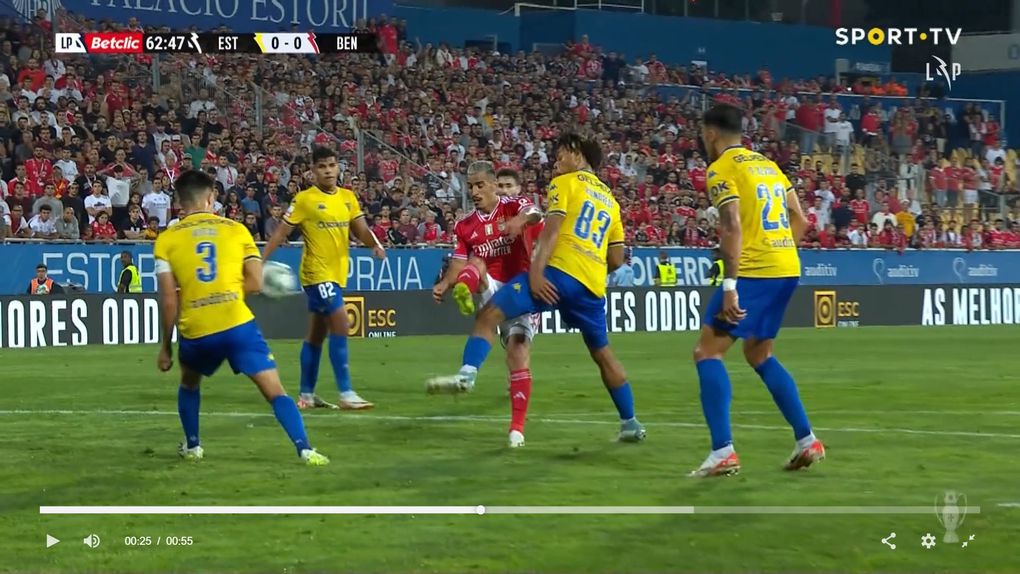 Comunicações do VAR: O penálti anulado a favor do Benfica no Estoril