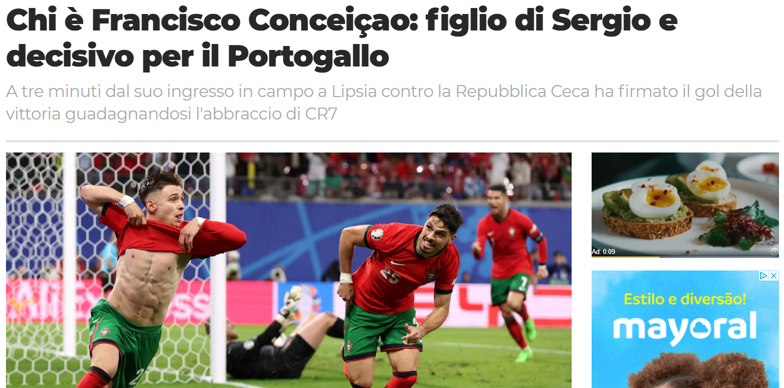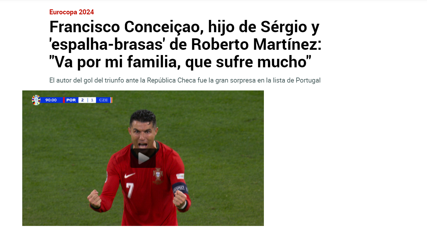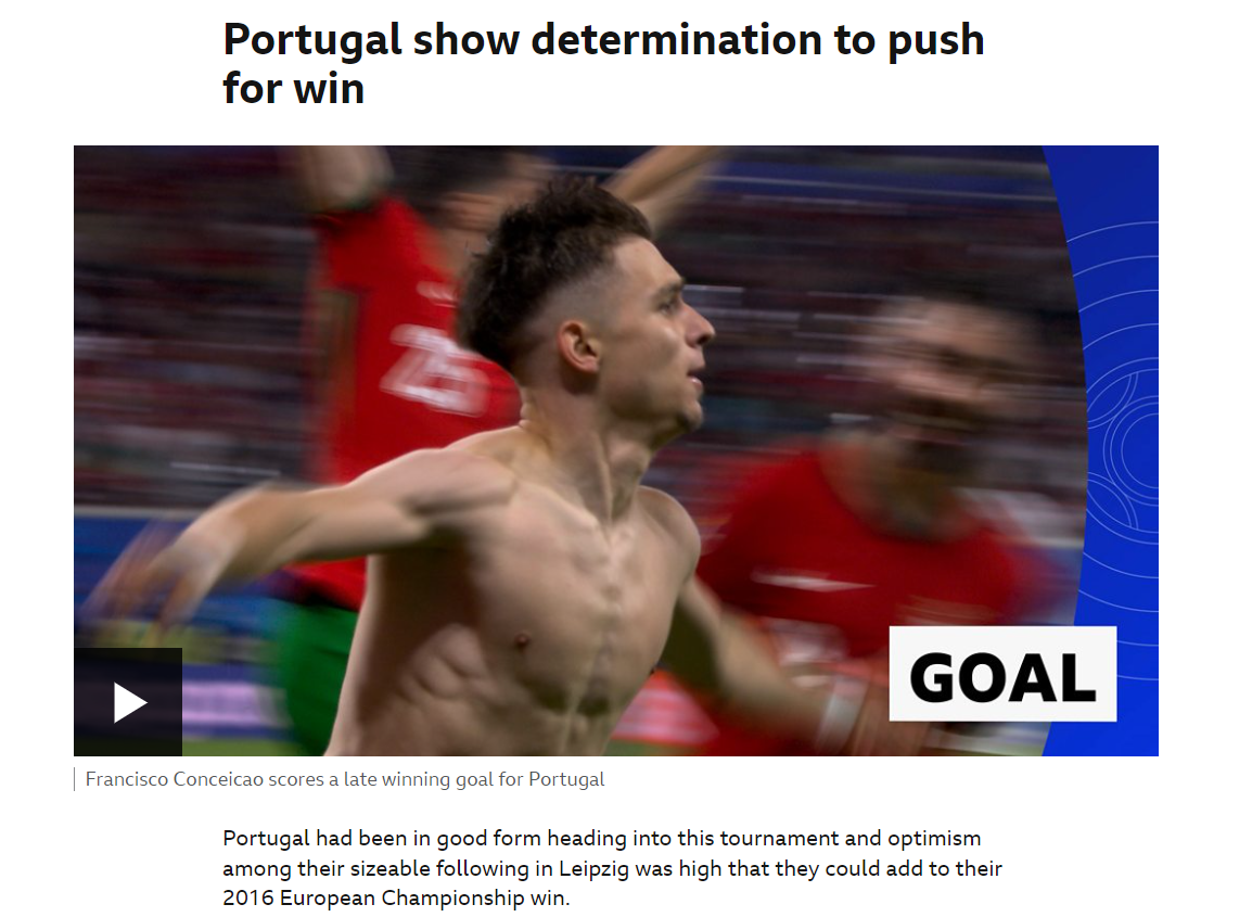 Na imprensa estrangeira, o grande destaque, para além de Cristiano Ronaldo, que fez história, tornando-se no primeiro jogador a atuar em seis Europeus, foi para o decisivo Francisco Conceição.
