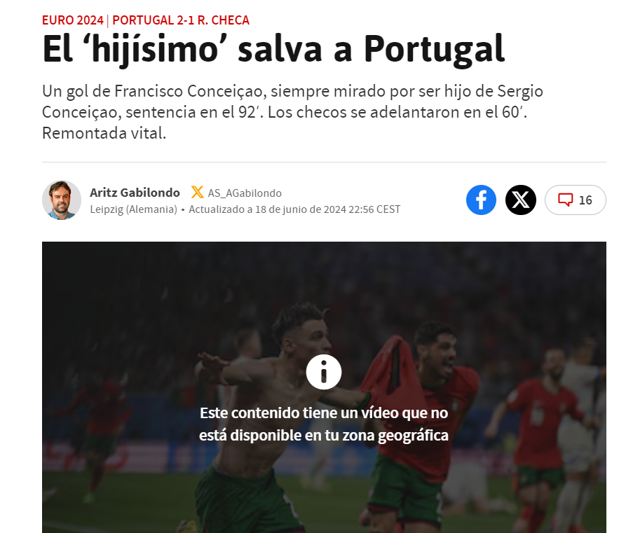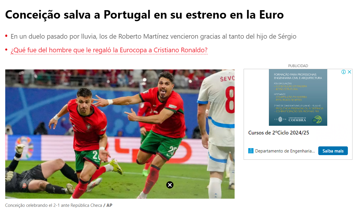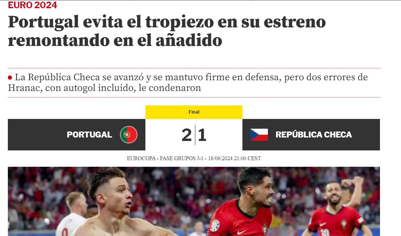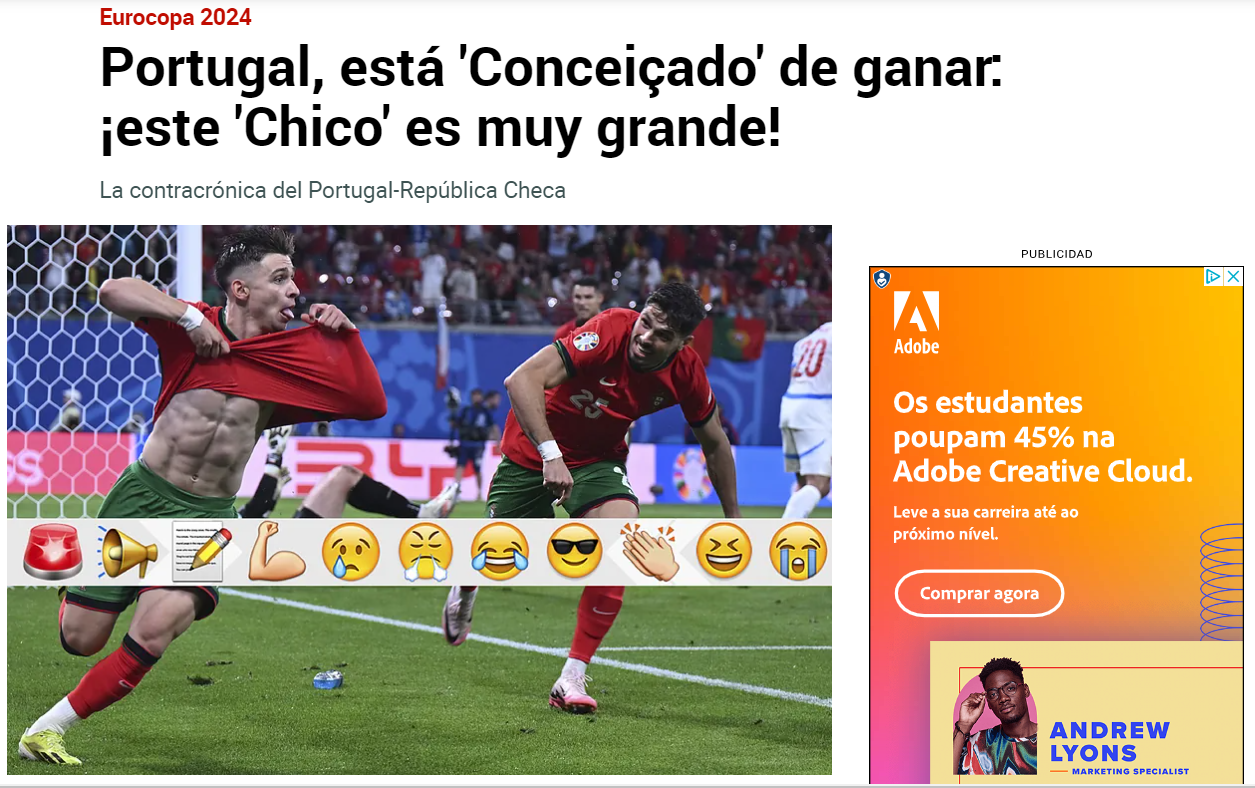 Na imprensa estrangeira, o grande destaque, para além de Cristiano Ronaldo, que fez história, tornando-se no primeiro jogador a atuar em seis Europeus, foi para o decisivo Francisco Conceição.