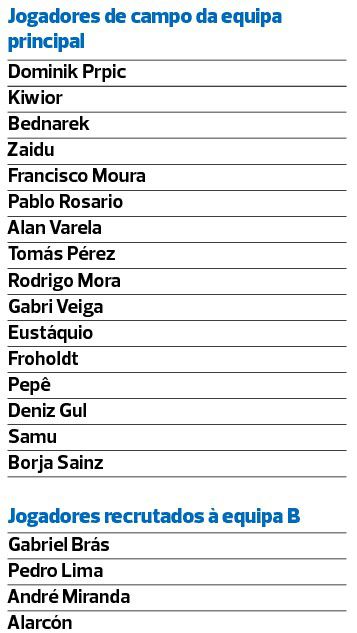 Do núcleo que forma o plantel principal resta 16 jogadores de campo disponíveis (ver quadros), um cenário alarmante numa fase em que o FC Porto conhece um arranque fantástico, com cinco vitórias consecutivas na Liga, 12 golos marcados e apenas um sofrido – um autogolo de Nehuén Pérez no clássico com o Sporting.