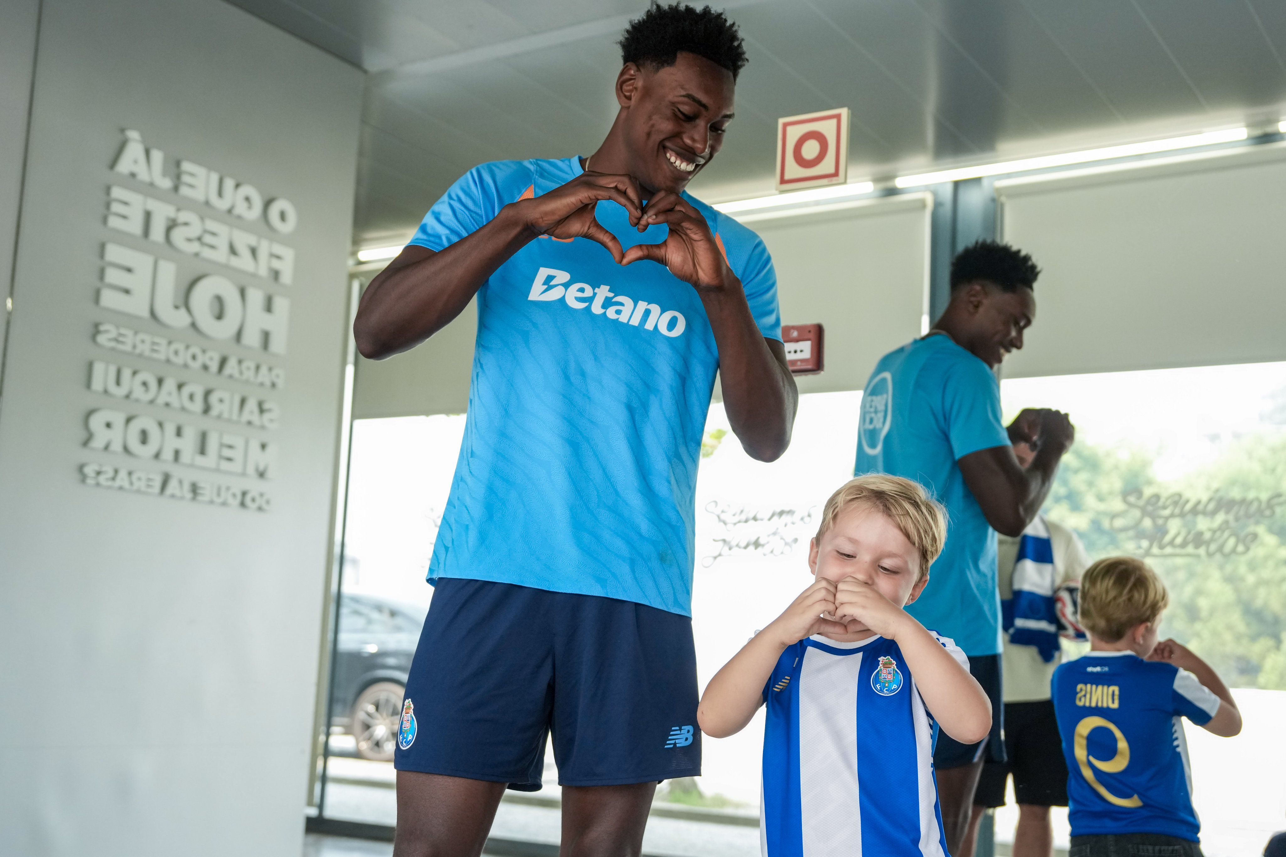 Dinis, do seu nome, foi convidado a visitar o Olival e teve como guia... Samu. Um dia em cheio para a criança, que conheceu os cantos ao centro de treinos do FC Porto com a camisola n.º 9 vestida, tirou fotos, uma delas também ao lado do reforço Victor Froholdt, e ainda deu uns toques no relvado.