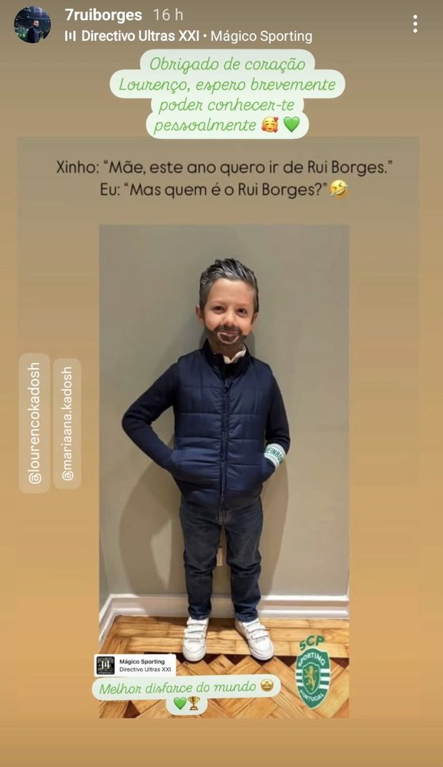 Rui Borges, técnico do Sporting, recorreu, esta sexta-feira, às redes sociais para agradecer o gesto de Lourenço, pequeno adepto que pediu à mãe para se disfarçar no Carnaval de Rui Borges.