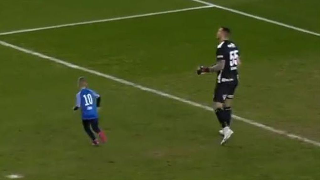 Criança foi ao relvado para marcar um golo, mas guarda-redes não foi na conversa (vídeo)