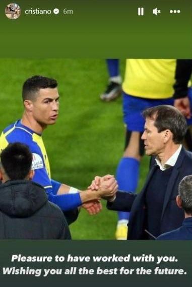 Pouco depois do anúncio da saída de Rudi Garcia do comando técnico do Al Nassr, Cristiano Ronaldo recorreu às redes sociais para deixar uma mensagem de despedido do técnico francês.