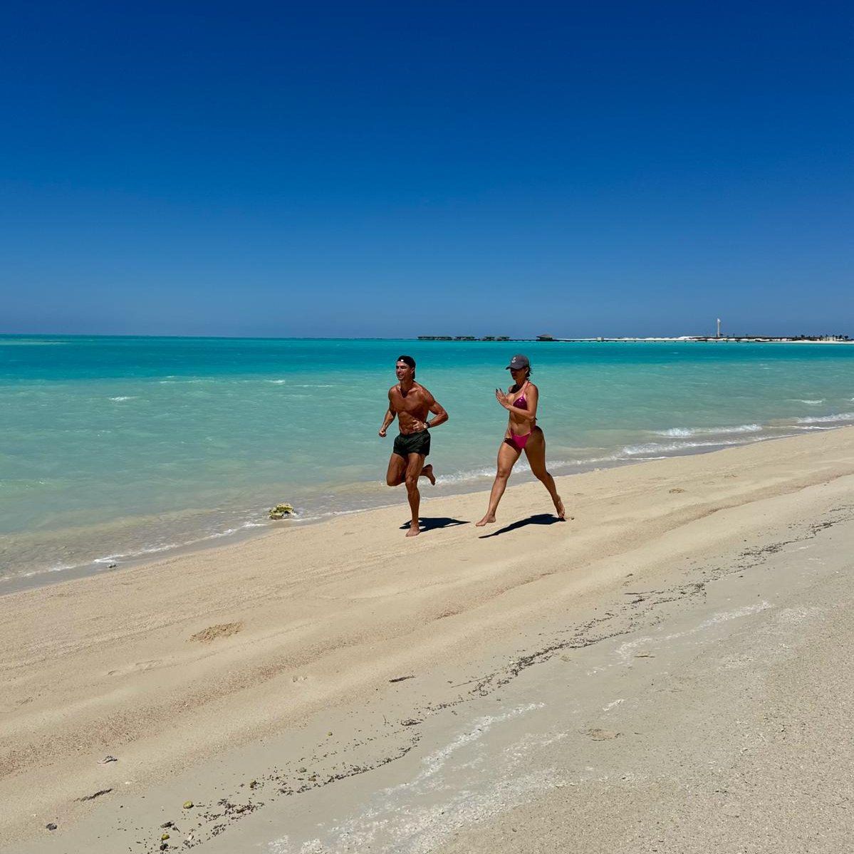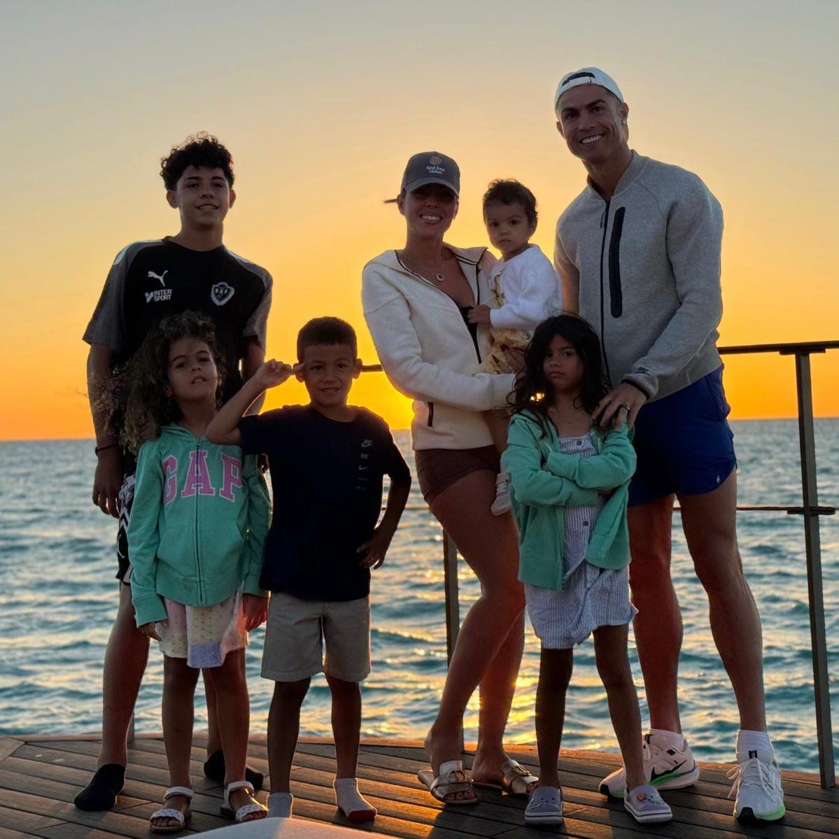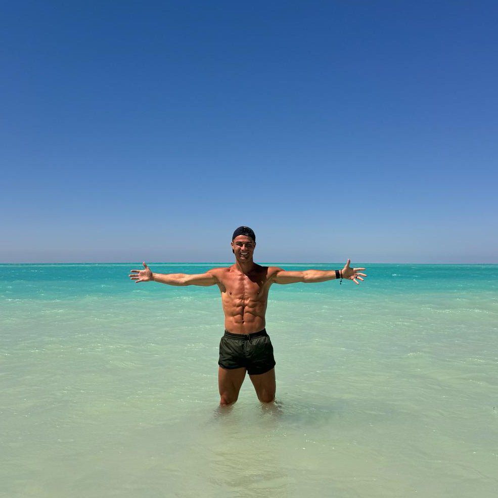 Cristiano Ronaldo foi a banhos no Mar Vermelho, mas também aproveitou para correr ao lado de Georgina, e fechou o dia com uma fotografia em família, ao por do sol.
