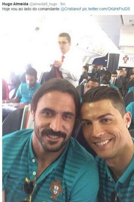 A fotografia tornou-se viral em 2014 aquando de uma viagem da Seleção para os EUA para preparar o Mundial. Cristiano Ronaldo ao lado de Hugo Almeida com este a aparecer com um novo visual de... bigode. CR7 partilhou a fotografia com a legenda. «Hoje vou ao lado do comandante», escreveu. Hugo Almeida recordou o episódio a A BOLA e deixou uma ressalva. «Ele é que foi e será sempre o nosso comandante. A Seleção depende muito do que ele faz», disse.