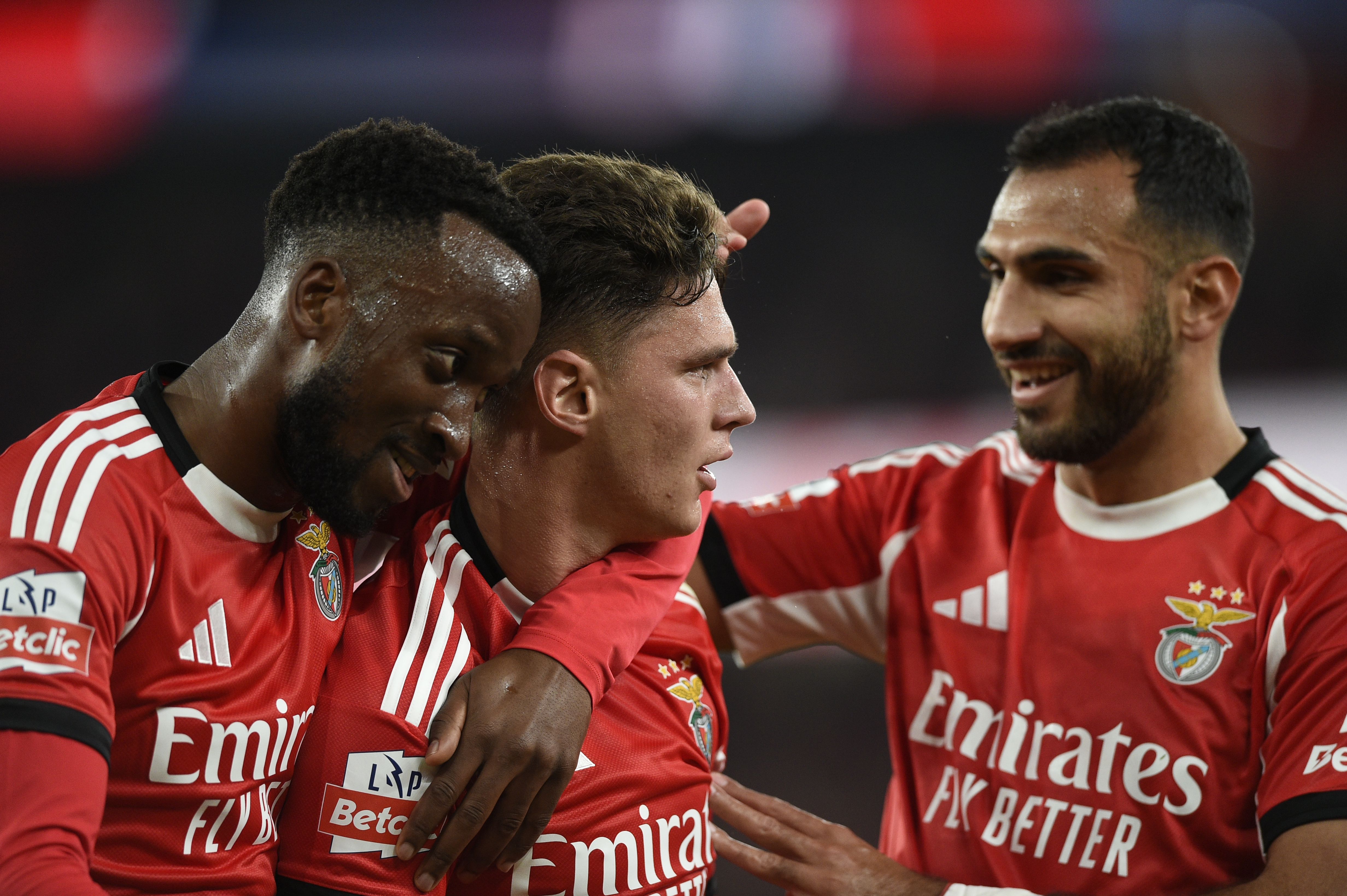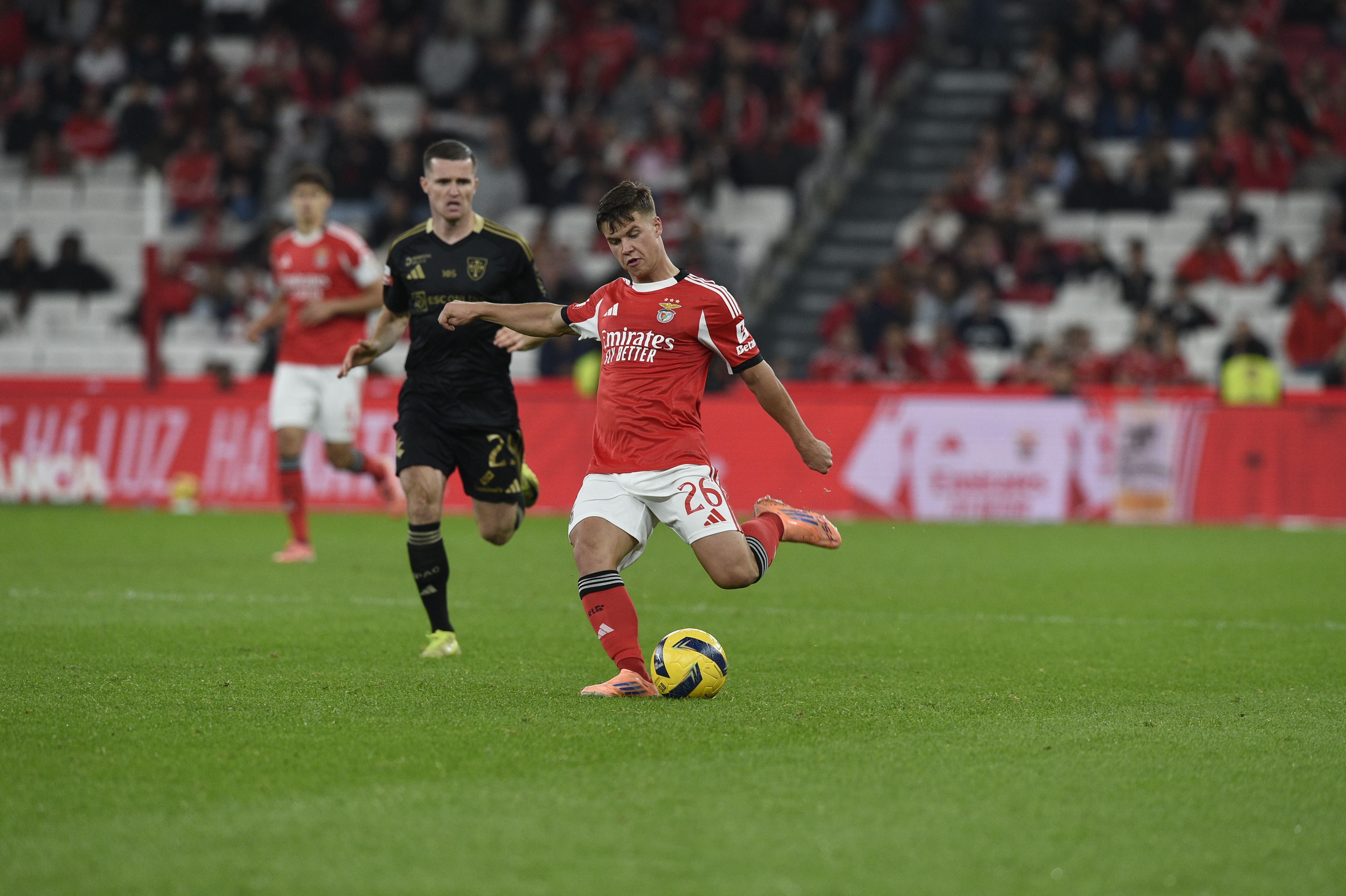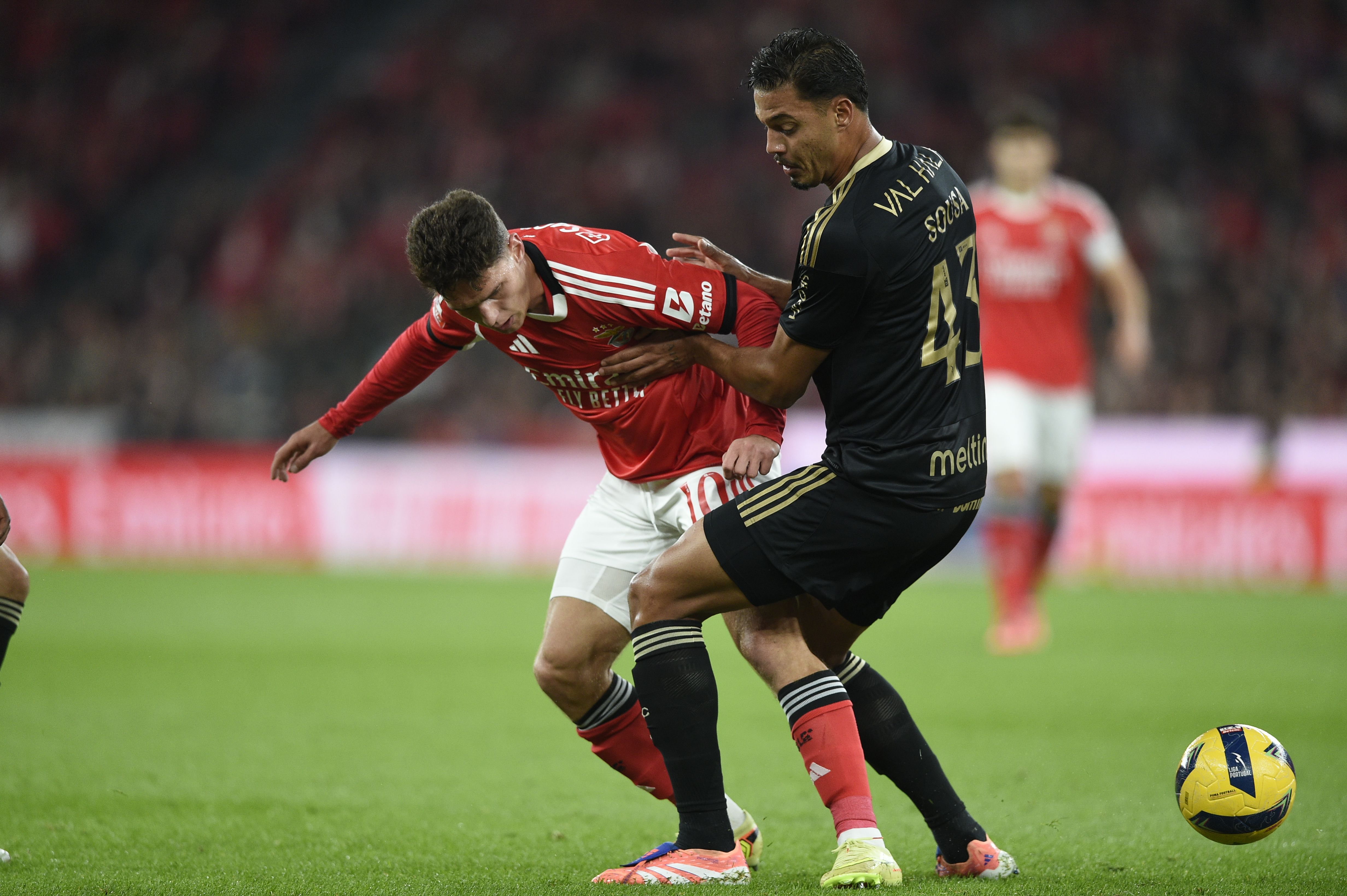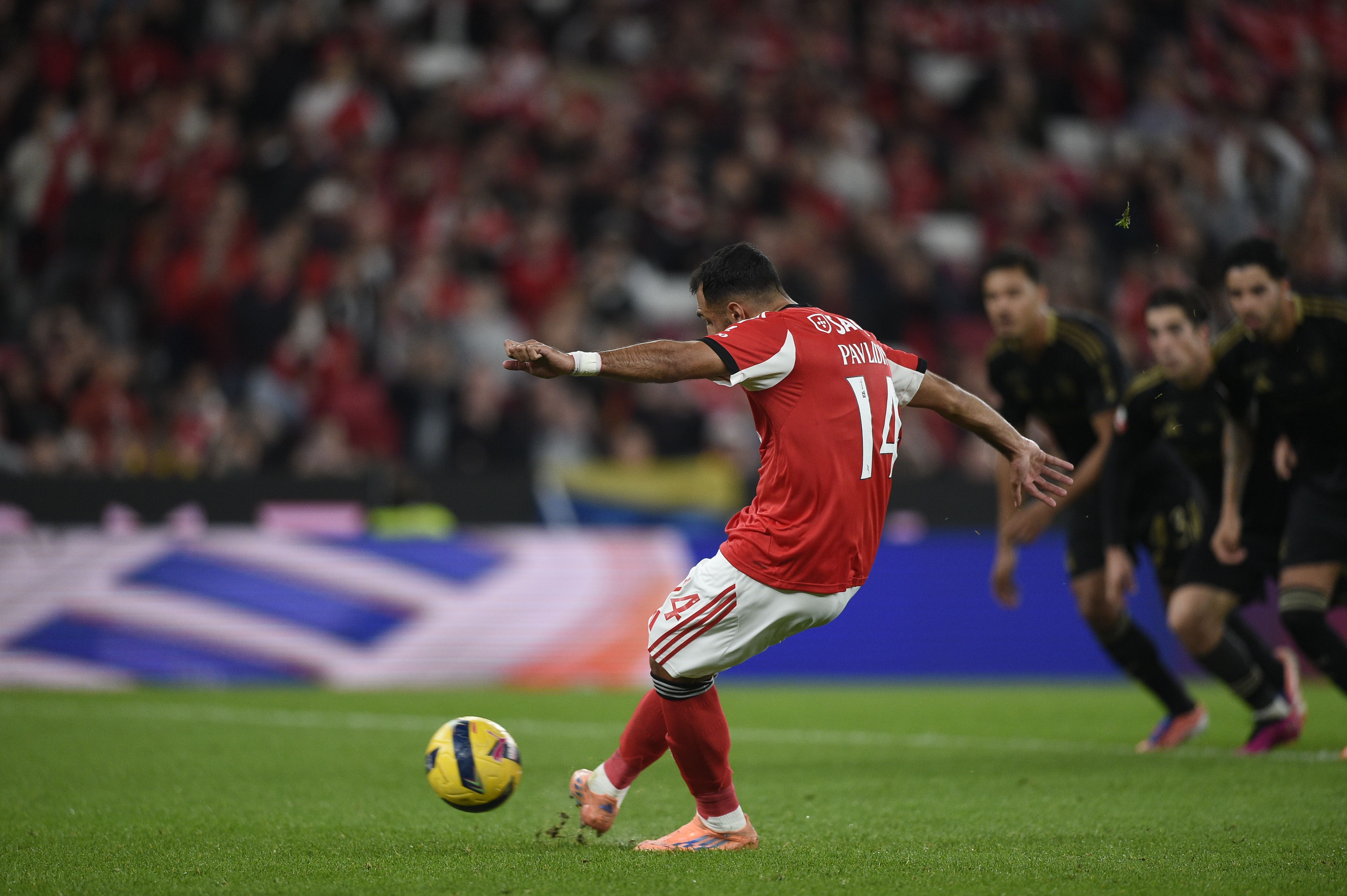 «Culpa nossa, culpa do árbitro e culpa do VAR. Culpa do árbitro por assinalar um penálti que está tipificado em todo o lado como não penálti. E um erro, e estou a ser simpático a chamar de erro, do VAR que tem como missão ajudar o árbitro a não cometer erros e faz um erro grosseiro. Culpa enorme e gritante do VAR. Culpa nossa porque não fechámos totalmente o jogo. Com o 2-0 fechámos e depois o árbitro e o VAR abriram. Mas mesmo na primeira parte tínhamos de fechar. Na primeira parte temos de fechar. Estamos a jogar com uma equipa que só defende, que não conseguia sair, que dominámos completamente recuperámos muito rápido a bola. Jogámos contra um bloco muito baixo e não temos grande presença na área, mas mesmo assim construímos muito pelos dois corredores, metemos muita intensidade no jogo. Quando fizemos o 1-0 a intensidade baixou. Depois chegamos ao intervalo e temos o Enzo [Barrenechea] doente. Para dar a mensagem à equipa que estamos a ganhar, mas temos de fechar o jogo não coloquei um jogador defensivo, meto o Prestianni exatamente para dar o sinal de 'vamos fechar o jogo o mais rápido possível'. Fizemos, ou pensámos que tínhamos feito. Quando o VAR e o árbitro reabrem o jogo voltámos a ter a iniciativa. Depois cometemos em posse e uma equipa que não fez um remate tem a fortuna de fazer um golo. Conclusão da história: culpa nossa, jogadores e treinador, responsabilidade gigante da arbitragem de um modo inexplicável. Prefiro ficar por aqui»