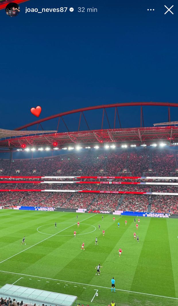 O médio esteve na Luz neste sábado, no mesmo dia (e quase mesma hora) em que o PSG goleou o Nice, por 4-0, na Ligue 1. O ex-Benfica foi poupado por Luis Enrique e aproveitou para regressar a Portugal, antes do arranque dos trabalhos da Seleção, que defronta México e Estados Unidos em jogos de preparação. João Neves foi um dos 27 convocados por Roberto Martínez - lista passou a 26 depois da dispensa do lesionado Rodrigo Mora.