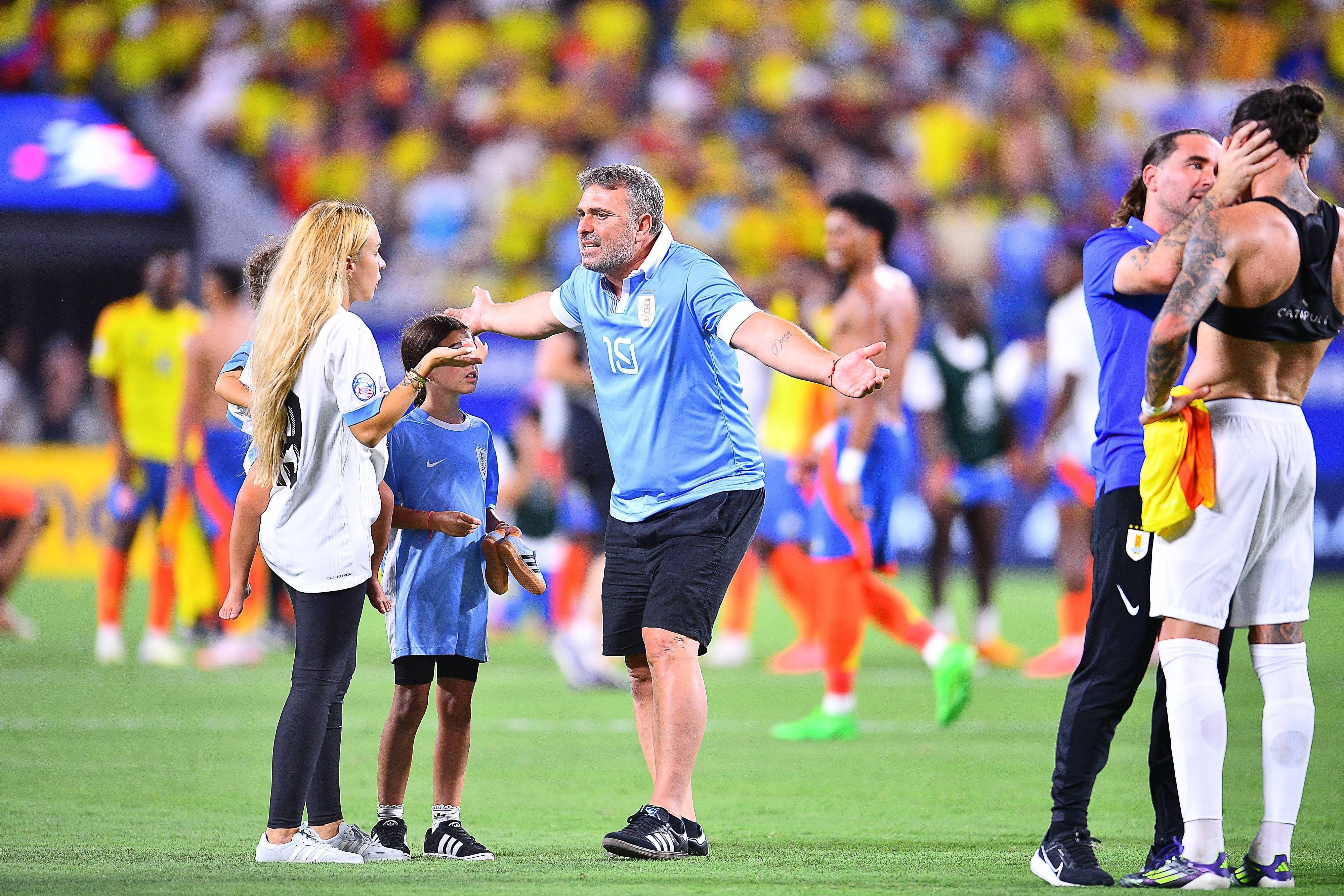 Avançado uruguaio em cenas de pancadaria no final do jogo com a Colômbia na Copa América