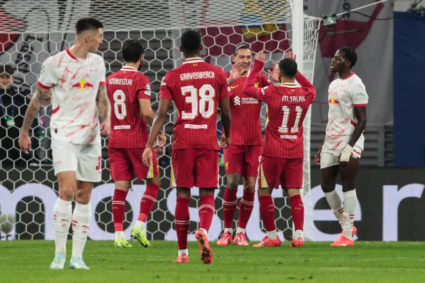 Ao contrário do que aconteceu com o Atlético Madrid e a Juventus, os alemães não começaram a ganhar, tendo sido mesmo os ingleses a inaugurarem o marcador, ao minuto 27. Após um cabeceamento enquadrado de Salah, Darwin certificou-se de que a bola ia entrar mesmo no fundo das redes e ‘roubou’ o golo ao seu colega de ataque.