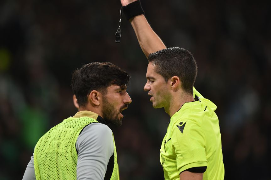 Ricardo Esgaio, de cabeça perdida, viu dois amarelos, aos 63’, após protestos enquanto aquecia. Hélder Malheiro mostrou um primeiro amarelo ao defesa, que continuou com os protestos, acabando por ver novo cartão amarelo e o consequente vermelho. Ricardo Esgaio teve de ser acalmado pelo staff do Sporting.