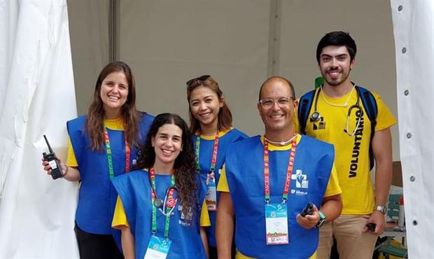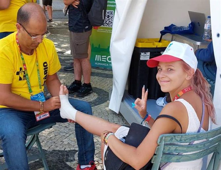 A ida à missa faz parte da rotina matinal de Lobo Ribeiro - «Já rezei pelos ciclistas que vão competir no Mundial», aludiu, referindo-se à Seleção de pista que acompanhou também depois dos Jogos -, antes se juntar à equipa na tenda de campanha que lhe está destinada numa organização «muito bem pensada» na área da saúde. «Há vários níveis, o INEM coordena tudo para tentar não sobrecarregar o Sistema Nacional de Saúde. Temos o hospital de campanha e as tendas que são pequenos centros de saúde, claro que não têm a mesma resposta, e ainda há equipas móveis, onde tenho estado [esta quinta e sexta-feira]. Andamos no meio da multidão. Aí é o Deus me livre», conta, sorridente. «Apanha-se tudo. Desde gente da Jornada Mundial com entorses, bêbados que andam por aí e querem falar. Logo a abrir, tive três entorses e depois, durante as celebrações, há pessoas a cair para o lado, literalmente. Muitas das crises de ansiedade que tenho encontrado têm a ver com cansaço, desidratação, calor... As pessoas apertam-se muito. Havia zonas a partir do Marquês para cima em que era impossível passar, mas havia outras tendas a dar apoio», especificou sobre as 16 tendas, cada uma com quatro ou cinco médicos, estudantes de medicina, enfermeira e fisioterapeuta.