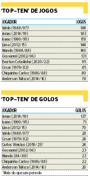 A partir de aí, as contratações de avançados brasileiros multiplicaram-se, primeiro apontando alto, com Valdo, um dos mais extraordinários estrangeiros que vestiram de águia ao peito, e depois, com Lima, que era um goleador competente, que marcou um golo importante em Marselha, na meia-final que levou o Benfica à final da Champions com o Milan de Sarri, a seguir com Isaías, contratado ao Boavista, que atingiu números estratosféricos.