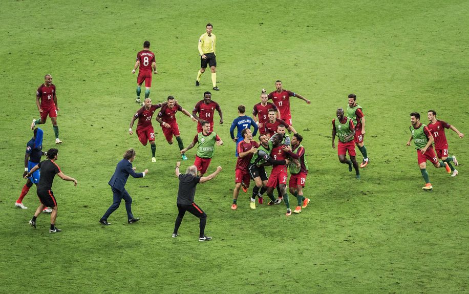 A celebração do mais famoso golo do futebol português