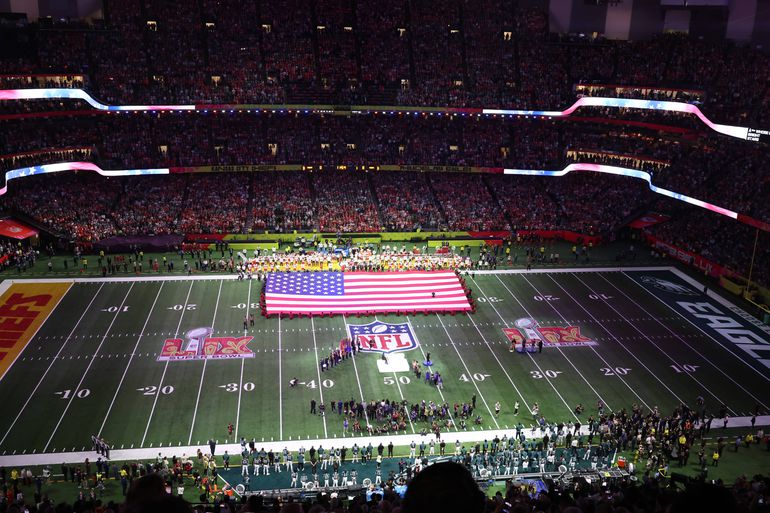 O grande evento desportivo – um dos maiores do mundo –, teve lugar em New Orleans, Louisiana, e contou com a presença de muitas celebridades de Hollywood, músicos, futebolistas, Donald Trump, presidente dos Estados Unidos da América, e não só. Antes do início da partida, o ator Jon Hamm apresentou os Chiefs, enquanto Bradley Cooper trouxe a animação para o lado dos Eagles.