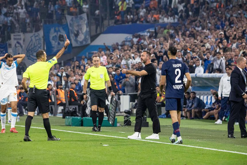 A histórica vitória do Marselha por 1-0 sobre o PSG, no início desta semana, teve o seu preço, já que o treinador Roberto De Zerbi foi expulso perto do final do jogo.