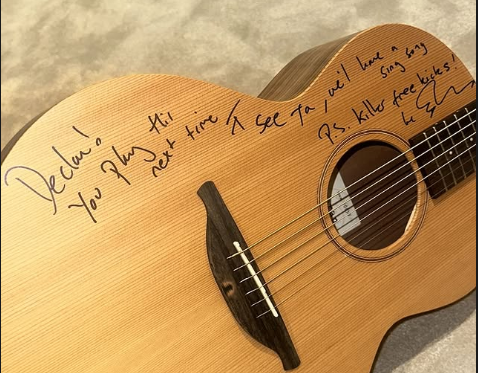«Tocas isto da próxima vez que te vir, vamos cantar uma canção. P.S.: Livres matadores», escreveu o músico e compositor, como mostra uma fotografia partilhada pelo internacional inglês na sua conta na rede social Instagram.