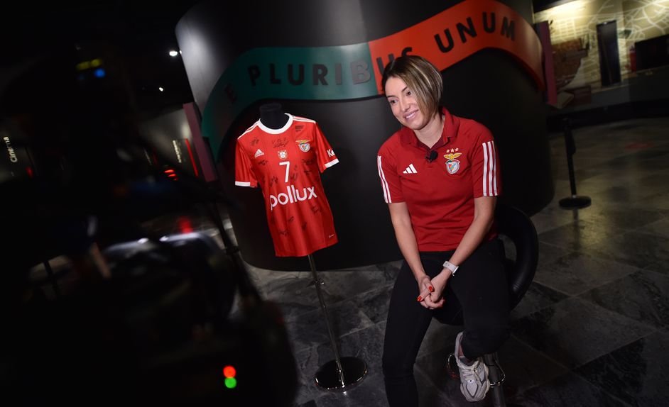 Sim. E tenho uma história incrível com o Benfica. Uma das minhas primeiras publicações no Instagram foi num jogo de futsal entre o Benfica e o Sporting aqui no pavilhão da Luz. Eu estava mesmo ao lado da claque do Benfica e quando eles começaram a cantar SLB, SLB, Glorioso, SLB, ah… [faz um coração com as mãos]. A partir daí, passei a dizer sempre: «sou benfiquista!» Isso foi em 2013 e desde então, gosto mesmo dessa música. No meu primeiro ano cá, quando fomos à final da Taça e voltei a ouvir essa música, fiquei tão, mas tão contente. E sempre que vou ao estádio, essa música é especial. Como é a vida, não é?