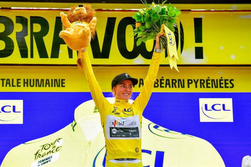 A neerlandesa concluiu as oito etapas do Tour com 3.03 minutos de vantagem sobre a belga Lotte Kopecky (SD Worx), terceira no contrarrelógio, e a polaca Katarzyna Niewiadoma (Canyon/SRAM), nona na derradeira etapa.