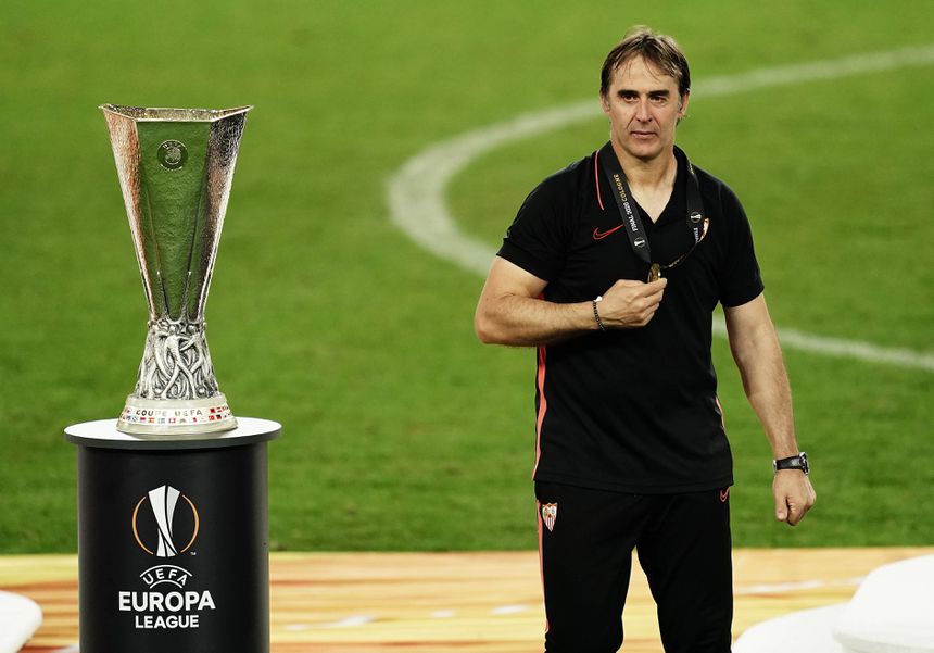 Julen Lopetegui, vencedor da Liga Europa 19/20, frente ao rival do Milan, o Inter, de Conte (Imago)