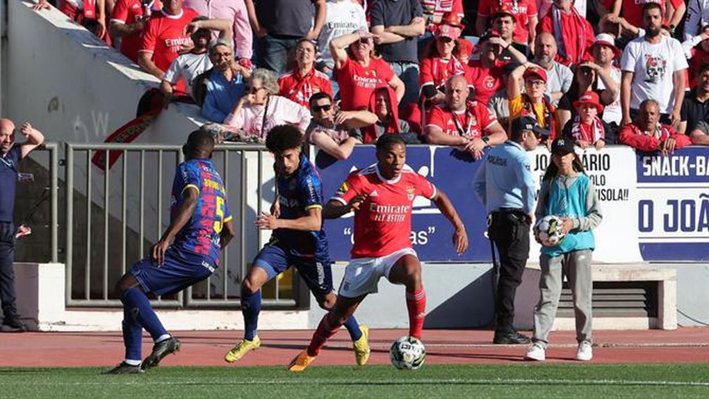 Assumiu a iniciativa do jogo, mas esbarrou na boa organização defensiva flaviense, que condicionou bastante o jogo dos encarnados no seu terço mais recuado, e procurou explorar transições rápidas para o ataque. Mas foi preciso esperar até ao minuto 19 pelo primeiro sinal de perigo no jogo, dado pelo Benfica, que numa jogada pelo lado direito em que Gonçalo Ramos combinou com Rafa viu este rematar forte, por cima da barra da baliza de Paulo Vítor.