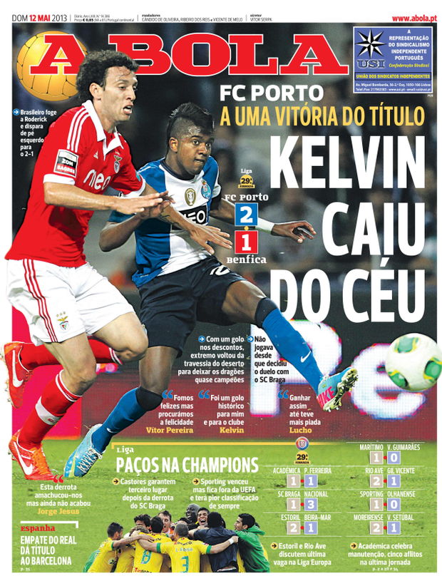 O golpe de teatro ficou guardado para o fim: aos 90+2’, Kelvin fugiu pela meia esquerda, lançado por Liedson, e disparou para o 2-1 final, que catapultou o FC Porto para o 1.º lugar — o título chegaria uma semana depois, com vitória por 2-0 em Paços de Ferreira.