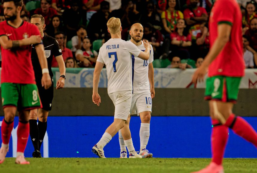 No ataque, o ponta de lança Benjamin Kallman teve um bom apontamento individual sobre António Silva, mas foi um raro vislumbre da capacidade ofensiva finlandesa na primeira parte. Os extremos Juho Talvitie e Oliver Antman estavam mais focados nas missões defensivas. O lateral-direito Nikolai Alho teve uma noite difícil perante Nuno Mendes e Rafael Leão. A exibição ao longo dos 45 minutos foi infeliz e saiu, naturalmente, ao intervalo.