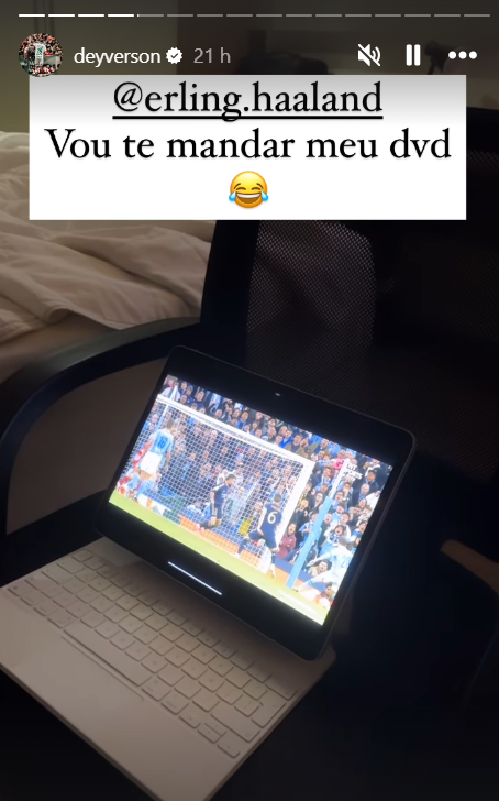 «Haaland, vou-te mandar o meu DVD», escreveu o avançado do Cuiabá, de 32 anos, usando ainda um emoji a rir.