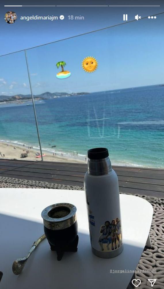 Jorgelina Cardoso, mulher de Di María, colocou no domingo à tarde, nas suas redes sociais, um vídeo de uma praia em Ibiza.