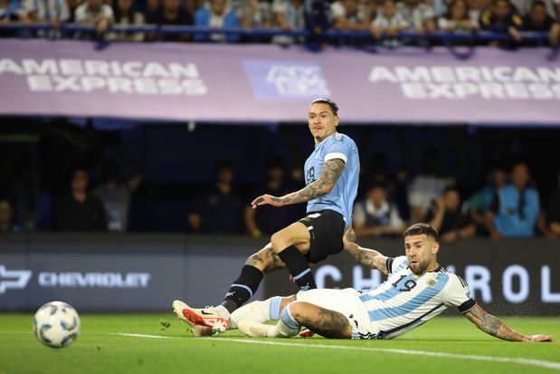 Otamendi no último jogo, frente ao Uruguai de Darwin Núñez, Foto: IMAGO